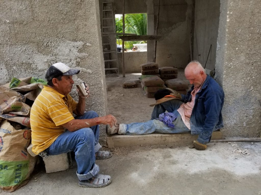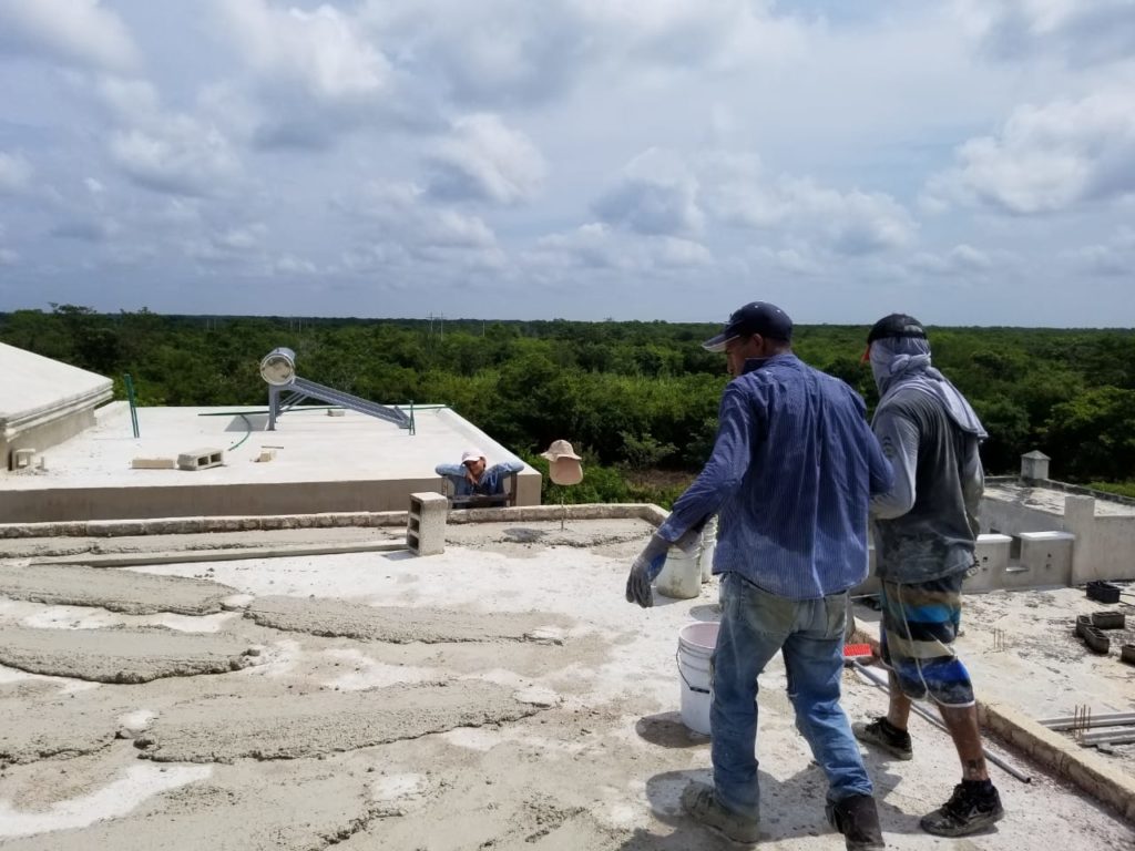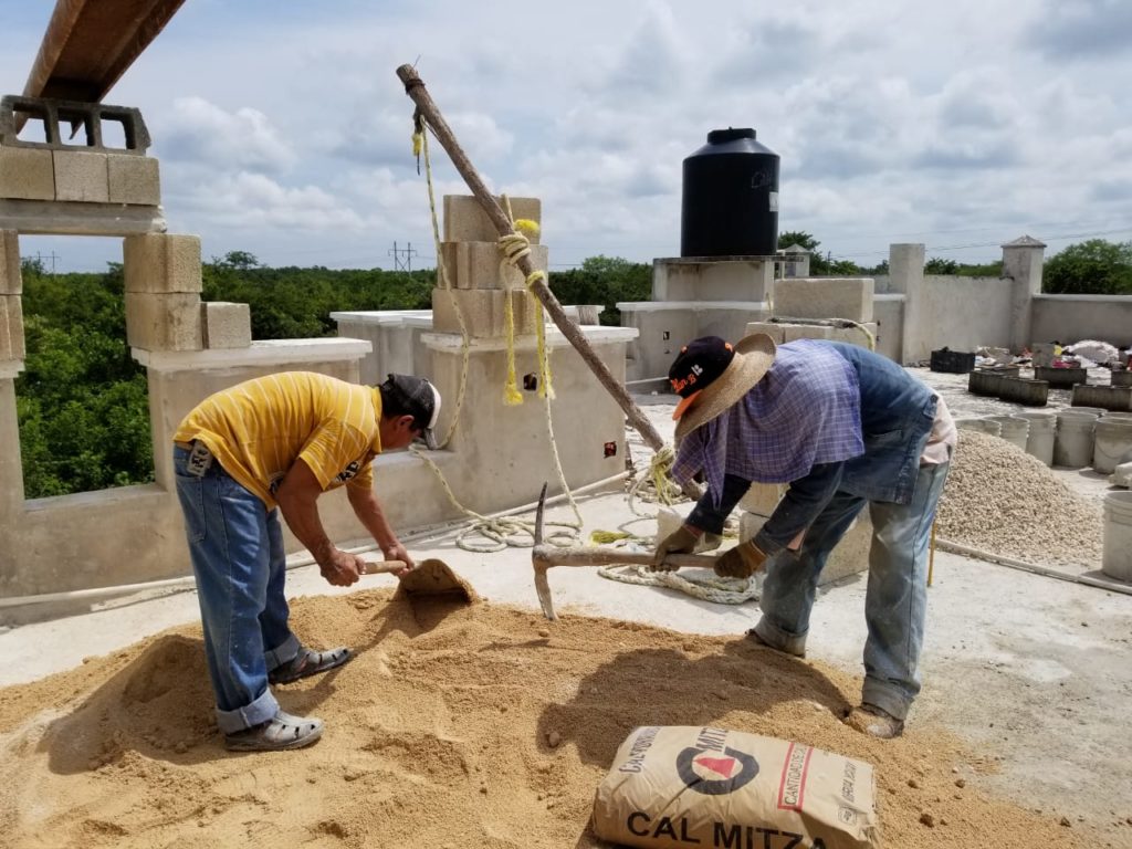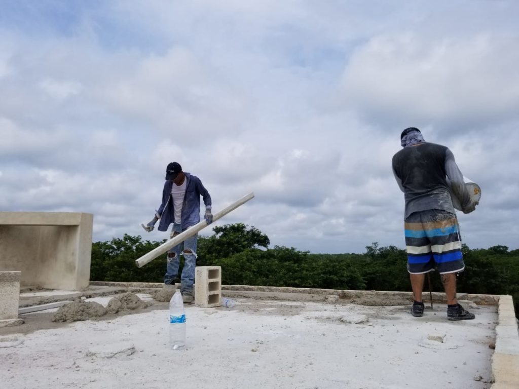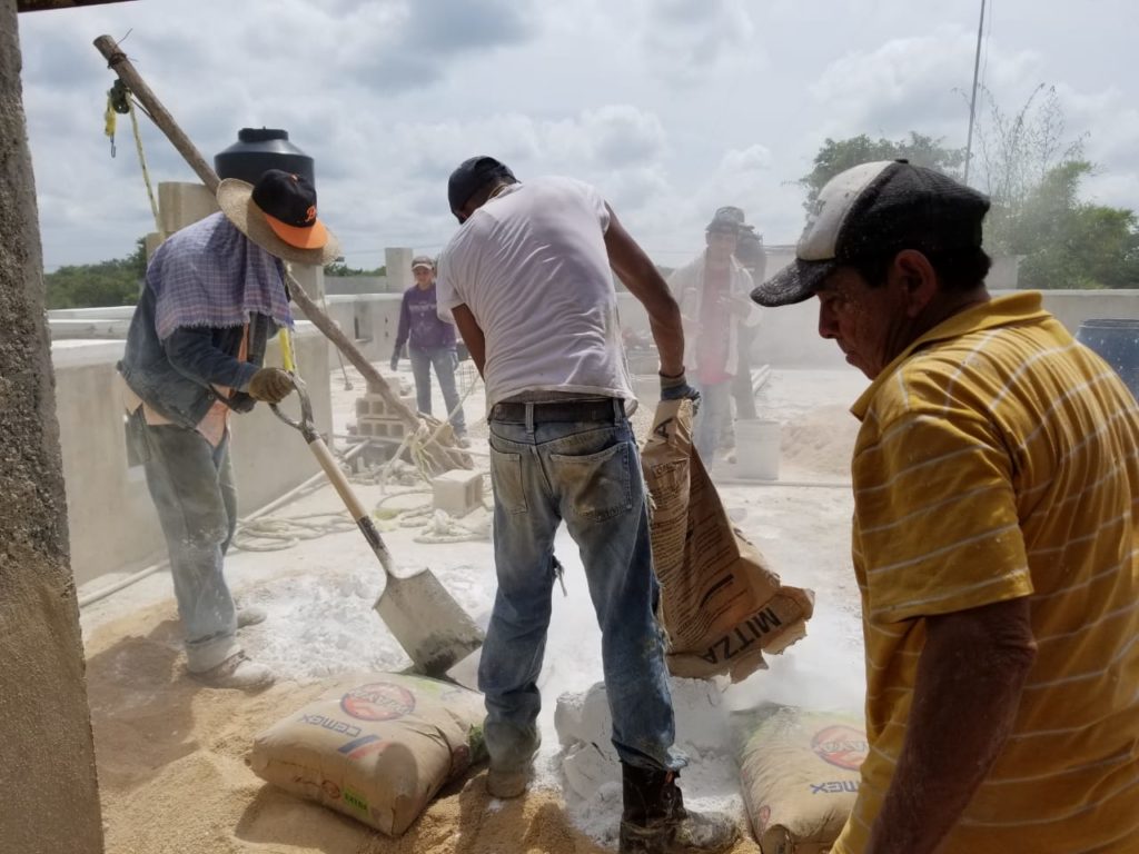 Jornada de construcción el pasado lunes 7 de octubre 2019, con el “colado del techo” de uno de los cuartos del segundo piso del Seva Ashram de Ticul, Yucatán.