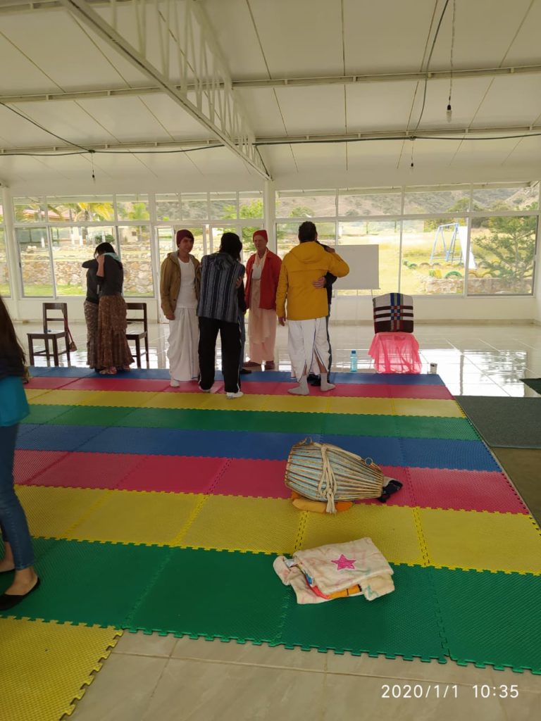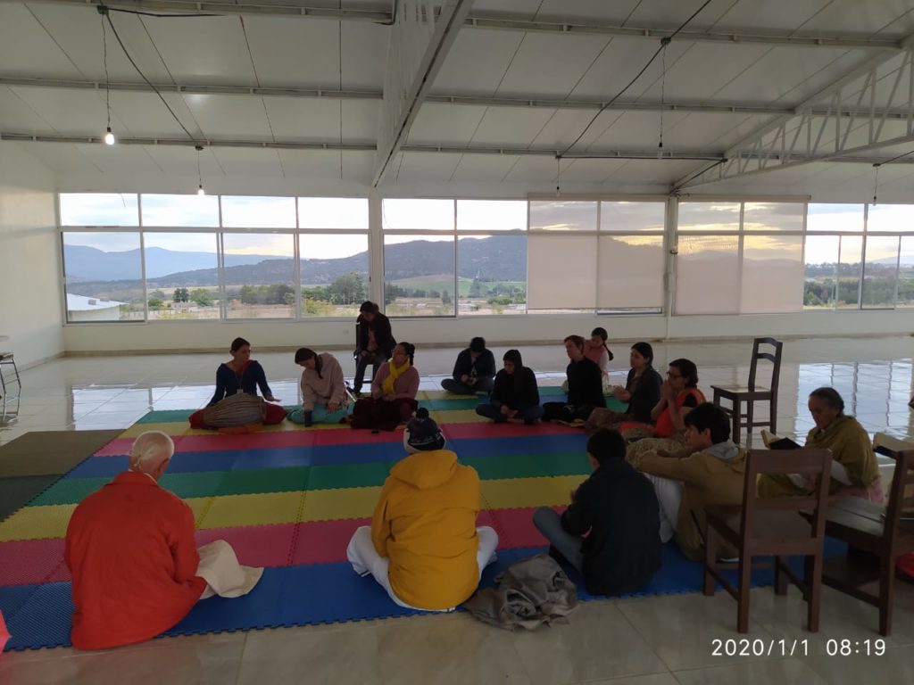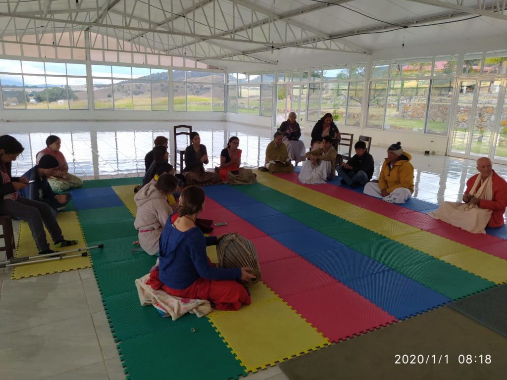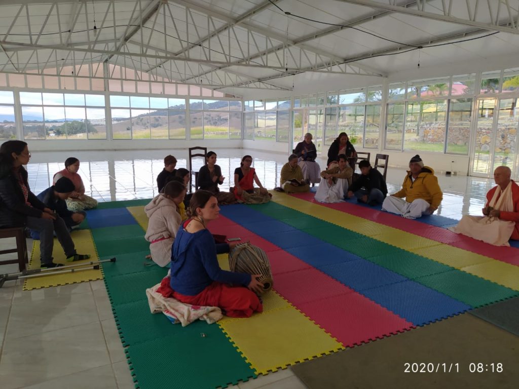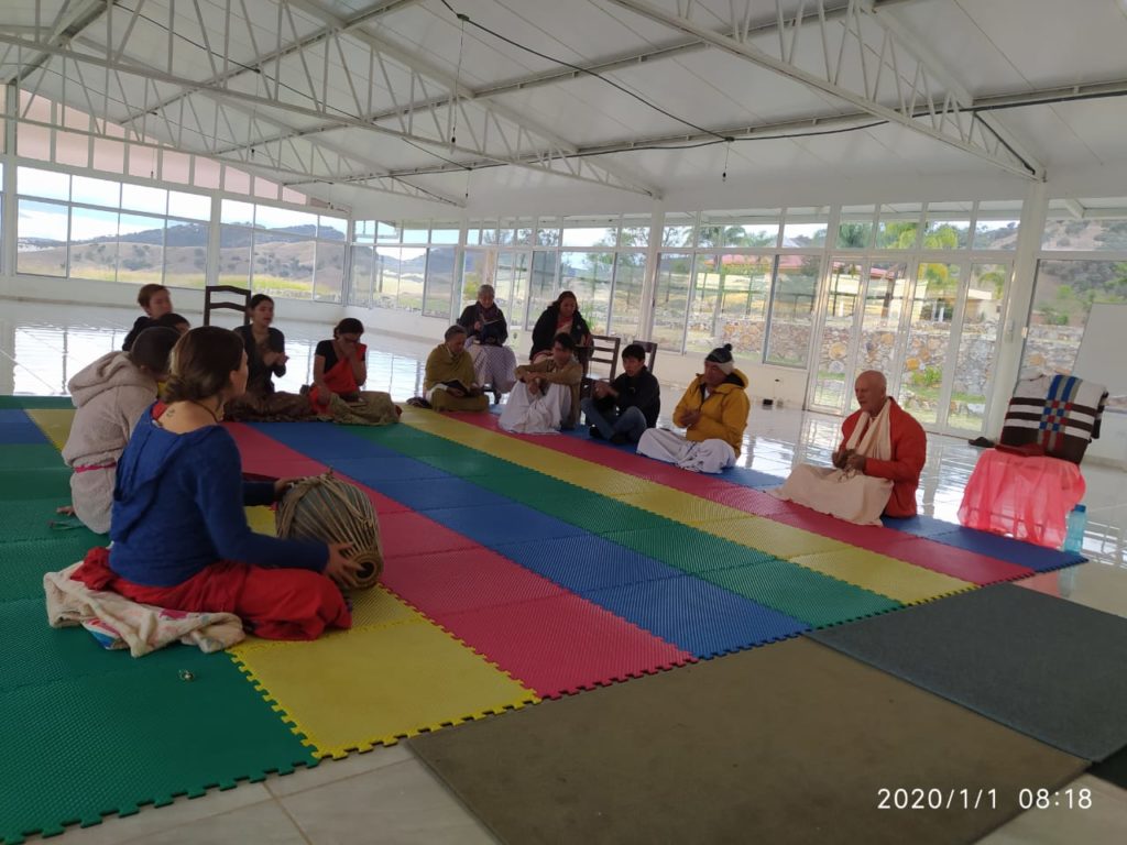 Gurudev Srila Bhakti Kusum Ashram Maharaj, dando la bienvenida para el primer Mangal Arati del nuevo año 2020