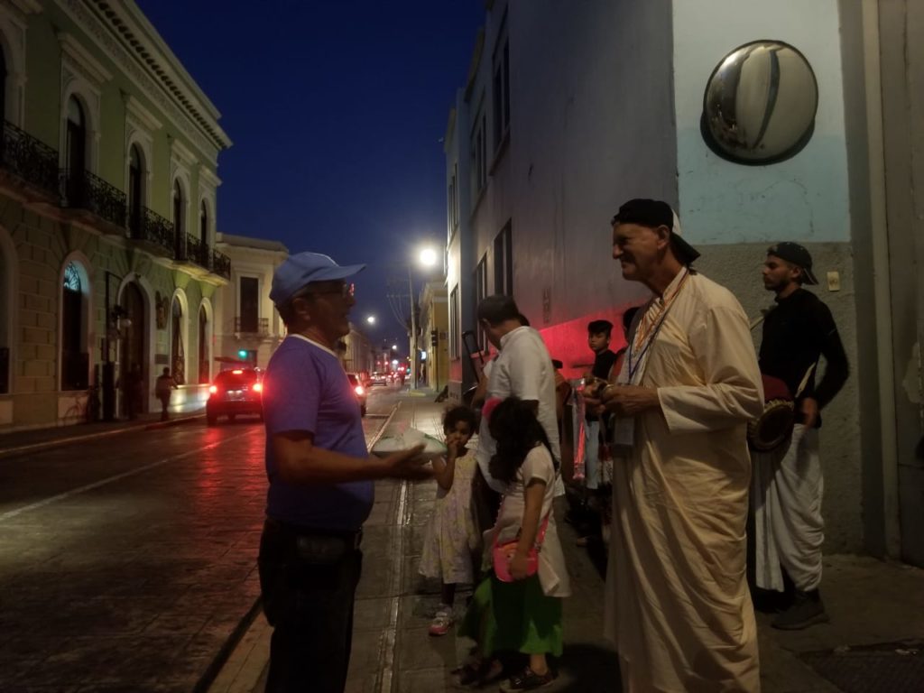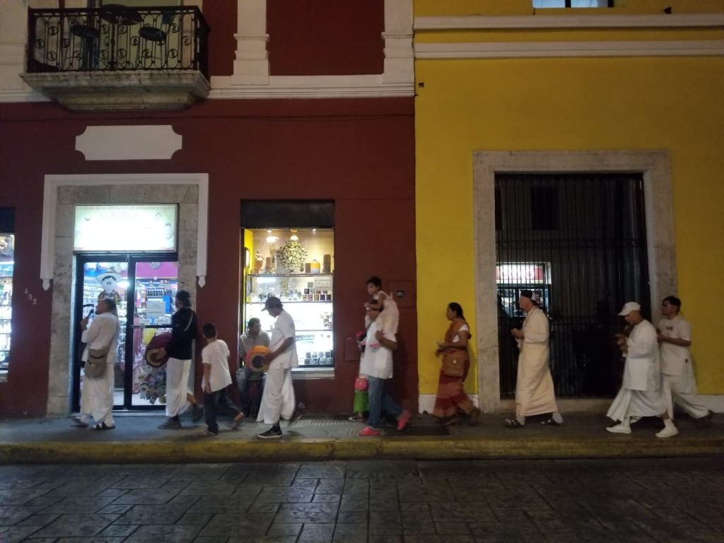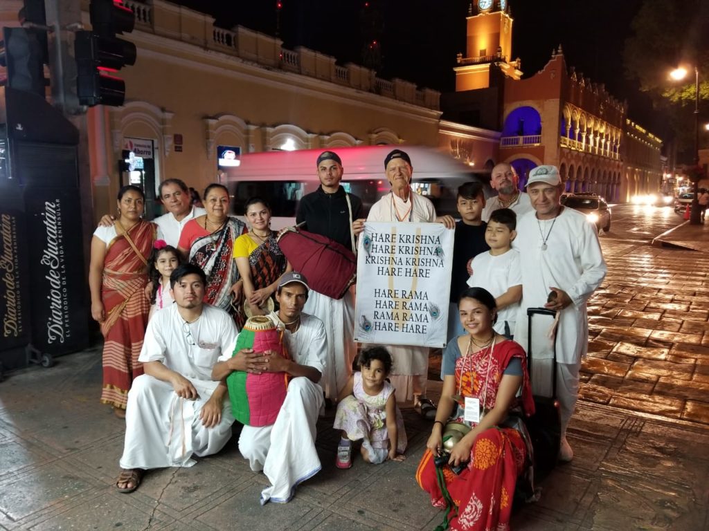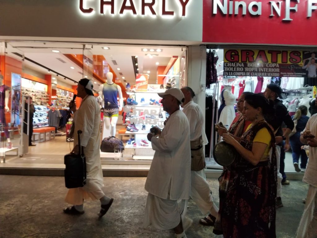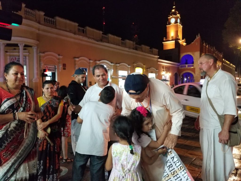 Srila Bhakti Kusum Ashram Maharaj, dirigiendo el programa de colecta, clase y harinam como todo los sábados en la ciudad de Mérida Yucatán.