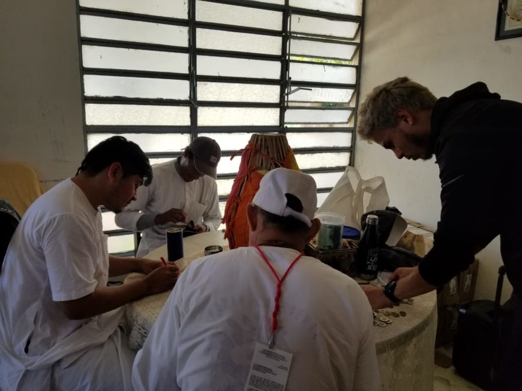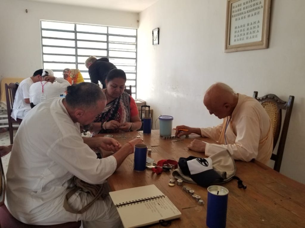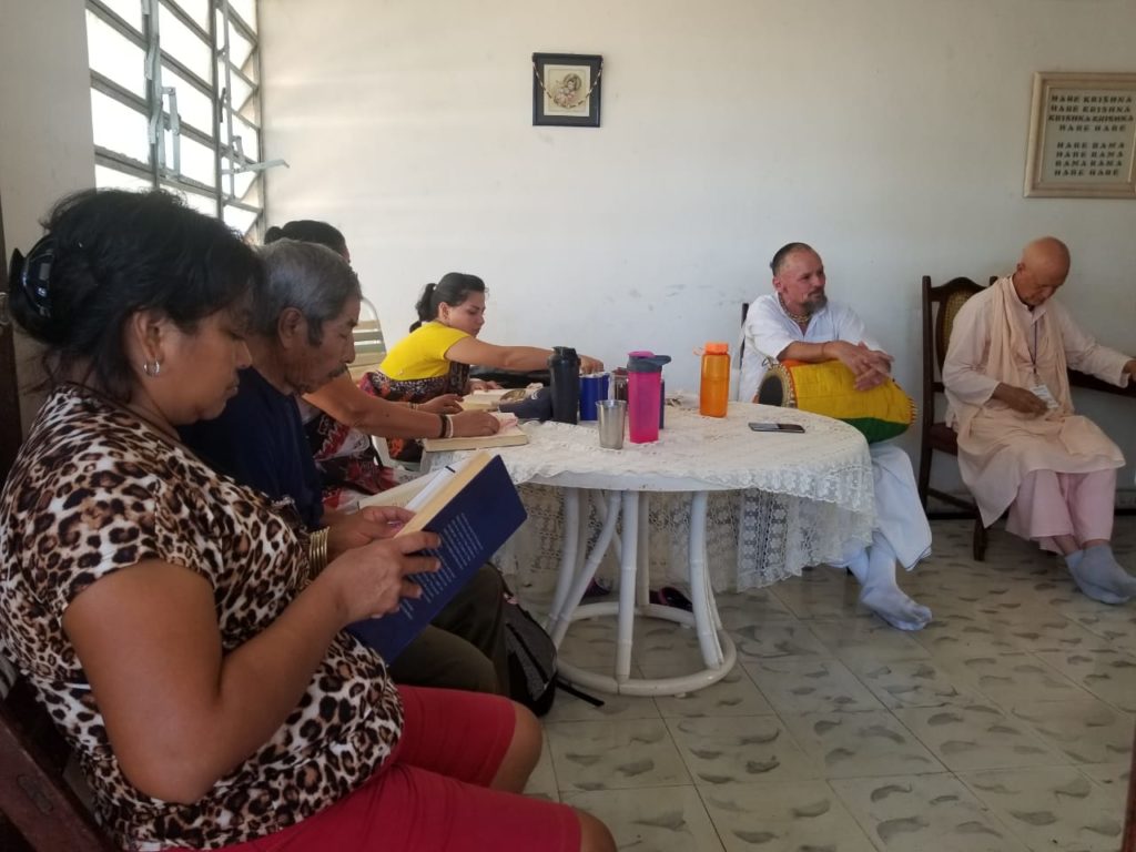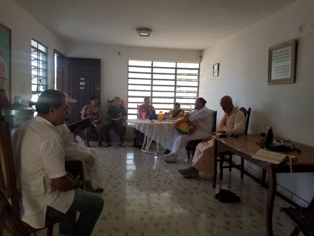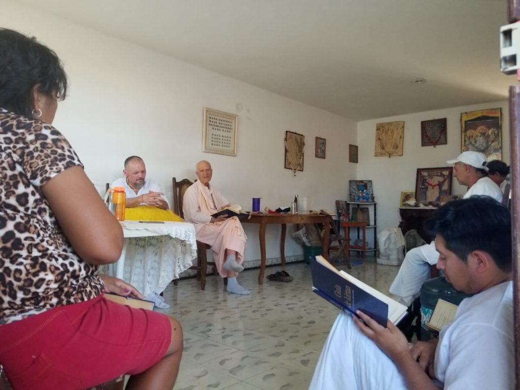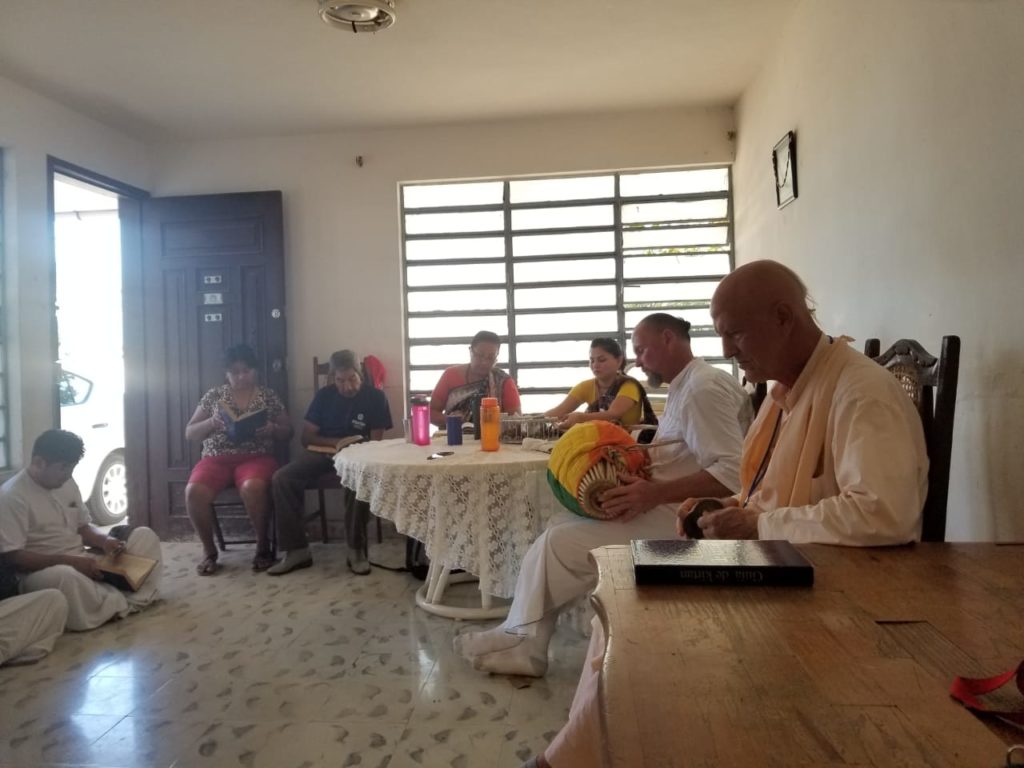 Maharaj, Ramandanda prabhu y su familia, Damodara prabhu y su familia, Abhaychaitanya Prabhu y su familia, otros devotos y amigos en la “casita” de Kanasín. Durante el sábado 11 de enero. 2020