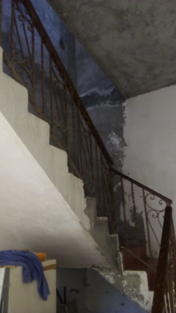 Aquí, casi por terminar las paredes de la entrada desde planta baja, escaleras y la parte de arriba.