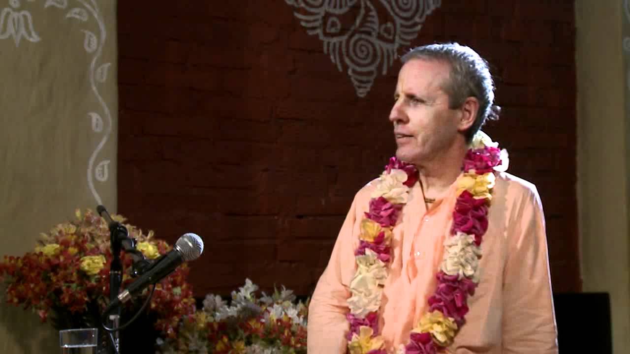 En las palabras de Srila Sridhar Maharaj: «Shrivantu vishve amritasya putrah (Svetasvatara Upanishad 2.5). Todos ustedes son criaturas del néctar. No pueden vivir sin esa sustancia nectarina. Somos esclavos de esa conciencia ––la Conciencia de Krisna––», Así que ahora de nuevo hallamos que la corriente está viva y que fluye a los pies de loto de Srila Govinda Maharaj.