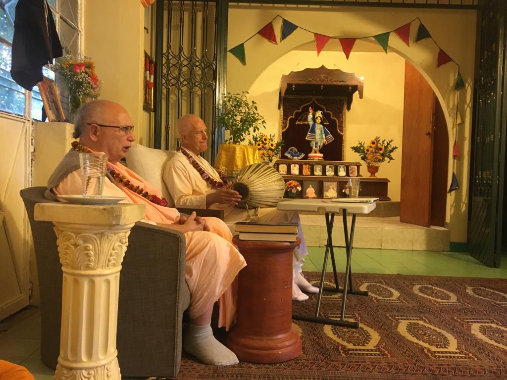 Srila Janardan Maharaj siguió expresando: «También aquí en México la Misión floreció por las visitas de Srila Govinda Maharaj. Srila Ashram Maharaj había estado predicando e hizo devotos aquí y aunque no había un gran número de ellos cada vez que Srila Govinda Maharaj venía a México más y más personas ingresaron a la Misión. Todos los discípulos de Srila Govinda Maharaj recibieron ánimos de Srila Ashram Maharaj. Srila Govinda Maharaj expresó que esos discípulos serían un apoyo para Srila Ashram Maharaj, y más adelante lo nombró Acharya».