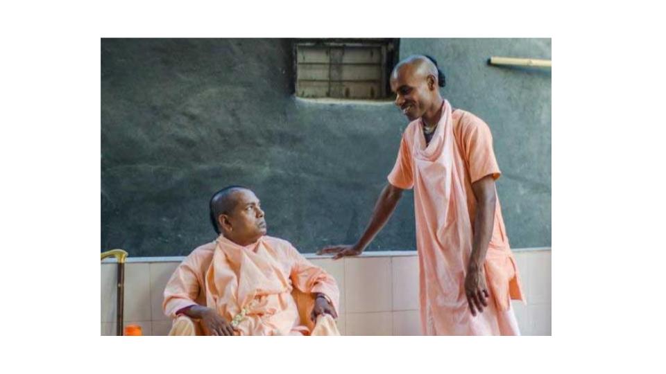 “Le he dado a Sripad Niriha Maharaj parte del servicio de prédica—él se ha hecho cargo de la prédica en los lugares donde solía hacerlo los primeros días. Sripad Niriha Maharaj ahora está predicando para Gaura Purnima. Además, yo ya no voy de casa en casa. Para colectar arroz en las aldeas, ahora Sripad Niriha Maharaj lo está haciendo.
