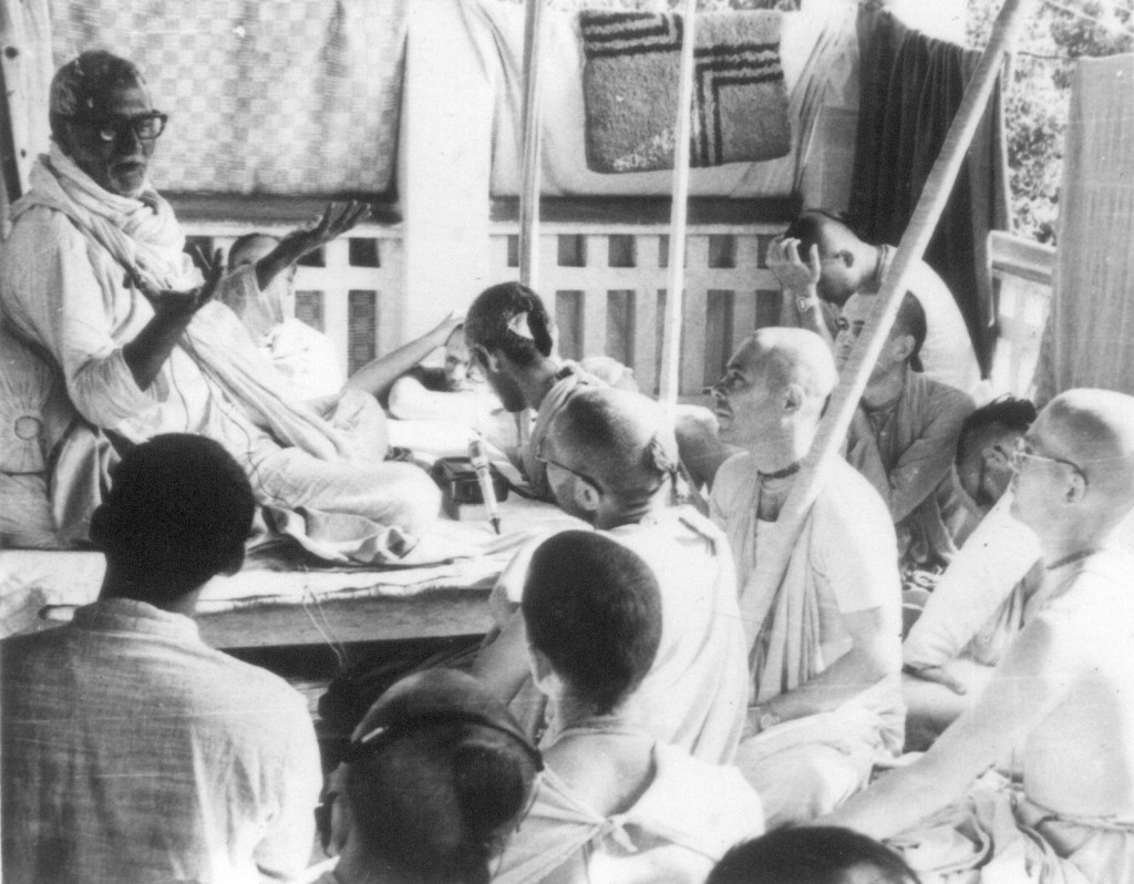 «Lo que grandes yogis logran con un enorme esfuerzo (yoge yogi paya jaha), ¡nosotros lo logramos con tan solo disfrutar cosas como este prasadam, con nuestros sentidos físicos ordinarios! El logro del yogi, conseguido con gran austeridad y autocontrol —dirigiendo e impulsando su mente hacia la sustancia superior, hacia la búsqueda superior—, nosotros fácilmente lo conseguimos con solo disfrutar el sabor de este trascendental prasadam y (yoge yogi paya jaha), lo que ellos no consiguen con mucha austeridad, ustedes lo han conseguido por disfrutar. Esta es la verdad (bhoge aja ha’be taha, ‘hari’ boli’ khao sabe bhai), de modo que, ¡continúen cantando el Nombre de Hari y tomando prasadam!»