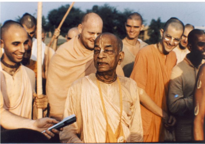 Srila Prabhupada: Es simplemente el estado de realizar que Dios es grande. Eso es neutralidad. Mas el verdadero servicio devocional empieza cuando uno entiende: “Porque Dios es tan grande, debo servirle. ¿Por qué estoy inútilmente rindiéndole servicio a este mundo? ¿Por qué no le rindo servicio a Dios? Ese estado se llama dasyam o servidumbre. Ese es el principio del Bhakti Yoga. La actividad material simplemente nos enreda en la repetición del nacimiento y la muerte. Eso se llama pravriti-marga, ‘la actividad para la complacencia de los sentidos’. Todos se ocupan en trabajar para la complacencia de los sentidos. El tigre lo hace, el cerdo y el perro también. Y si un hombre también llega a ocuparse en el disfrute de los sentidos, como los tigres, los cerdos y los perros, entonces, en su próxima vida llegará a estar en una de esas especies de vida.