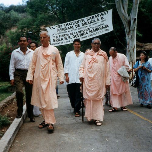 ¿Cómo conocer a nuestro Señor, cómo conocer a Krisna, el Señor? Pues es muy difícil. Nuestro corazón, nuestra vida se encuentram ahora en una situación en la que no poseen esa pureza para participar en el mundo espiritual; sin embargo, se nos explica que a través de aquellos que son Sus asociados, Sus agentes, Él se torna accesible a nosotros. Y así también, escuchar a Bhaktivinod Thakur hablar acerca de Sri Rupa Goswami, de Sri Sanatan Goswami, de los seguidores tan excelsos de Sri Chaitanya Mahaprabhu y de propio Señor, nos resulta a veces un poco lejano, mas no debe ser una razón para no prestar atención o para creer que esto no me compete a mí. No. A todos nos compete el amor divino, a todos nos compete la necesidad que tenemos de amor. Es una cosa muy íntima, aunque proviene quizá de una tierra muy lejana, de un punto muy distante en el planeta, de un hemisferio opuesto al nuestro; aun así, es algo tan íntimo que es considerado vital. Vital quiere decir que no podemos vivir sin ello, y esa es la naturaleza de los temas hablados en nuestras reuniones. Algo vital para nosotros, que no debe considerarse como perteneciente a un solo individuo o a una sola nación o a una sola raza. Desciende desde otro plano y llega a nosotros a través de personas muy calificadas que han recibido esa gracia del propio Señor, que son Sus asociados y quienes descienden también y aceptan ciertas formas, cierto carácter o nacionalidad, pero con el fin de propagar aquello que es eterno, que no pertenece al mundo del nacimiento y la muerte.