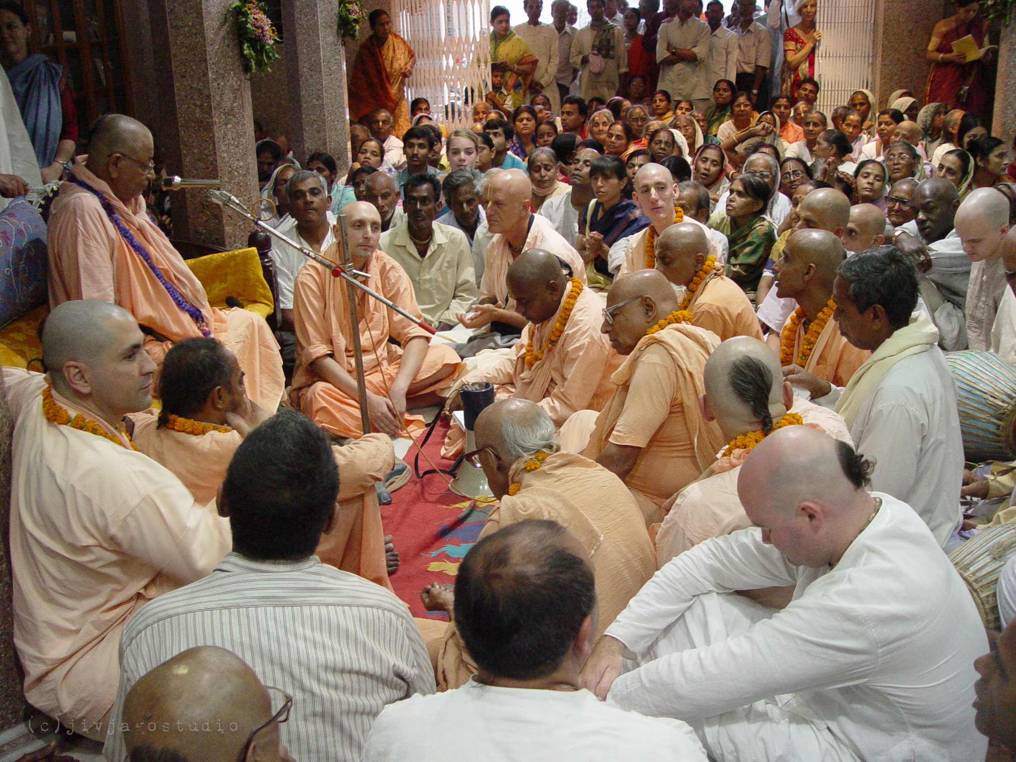 Constantemente hablaba con Gurudev sobre todas las cosas felices y tristes. Iba a verlo a las 2-3 de la mañana. A veces me llamaba por la noche, a las 2:30 o 3 de la mañana, y yo corría inmediatamente hacia él—incluso si estaba durmiendo con una gumcha, si Gurudev me llamaba, acudía inmediatamente a él. Nunca pensé en tomarme el tiempo para ponerme un dhoti y una camisa, corría como estaba, con una simple gumcha. Gurudev me aceptó como su propiedad… “Janakadhika vatsala snigdha-padam”. Recibí mucho afecto de Gurudev, su afecto fue mucho más de lo que ni siquiera obtuve de mi padre o de mi madre… Cuando Gurudev dejó este mundo, pensé: “Ahora, ya no queda nadie en este mundo que me castigue”. Siempre hablaba con Gurudev de corazón a corazón, le contaba todas las cosas felices e infelices, y cuando Gurudev abandonó este mundo, no pude entender nada—lo que estaba pasando, lo que iba a suceder, todo se hundió en la oscuridad para mí… Pensé, “¡Estoy solo!” Me quedé solo, pero luego muchos devotos extranjeros vinieron y se quedaron siempre conmigo, así que gradualmente pensé: “Ya no estoy solo. Seguiré adelante y pasaré mis días felices e infelices con ellos…”